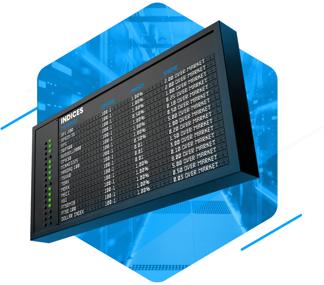 Currently, there are about 60 major stock markets in the world with a total value of dozen of trillions USD. Enjoy highly technological CFD trading on both blue-chip stocks and the shares of local businesses.